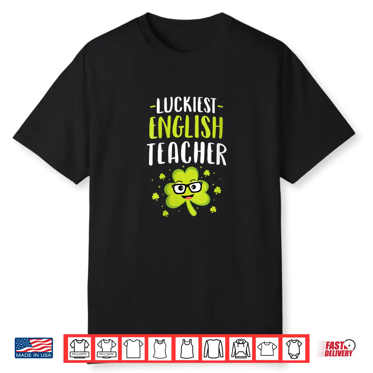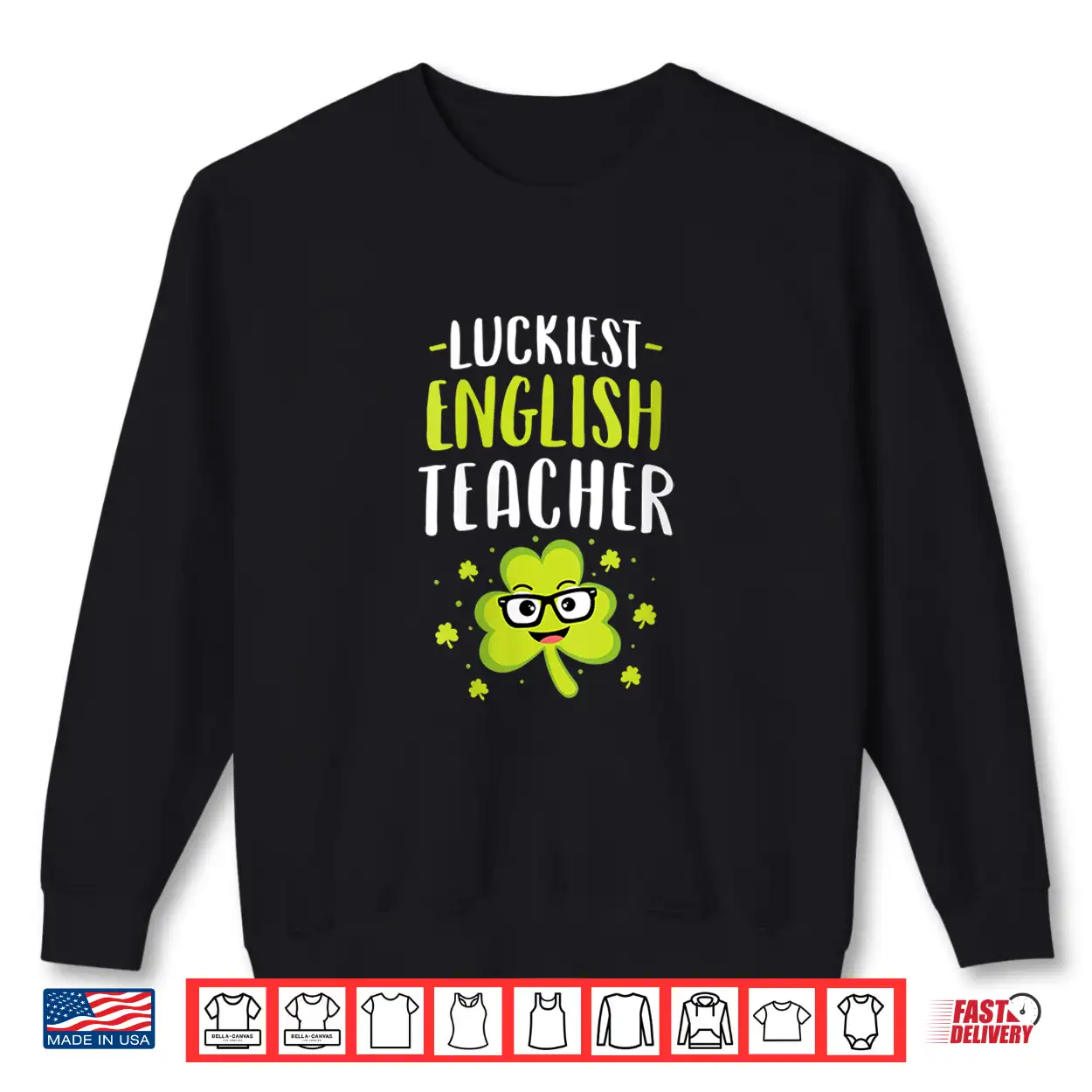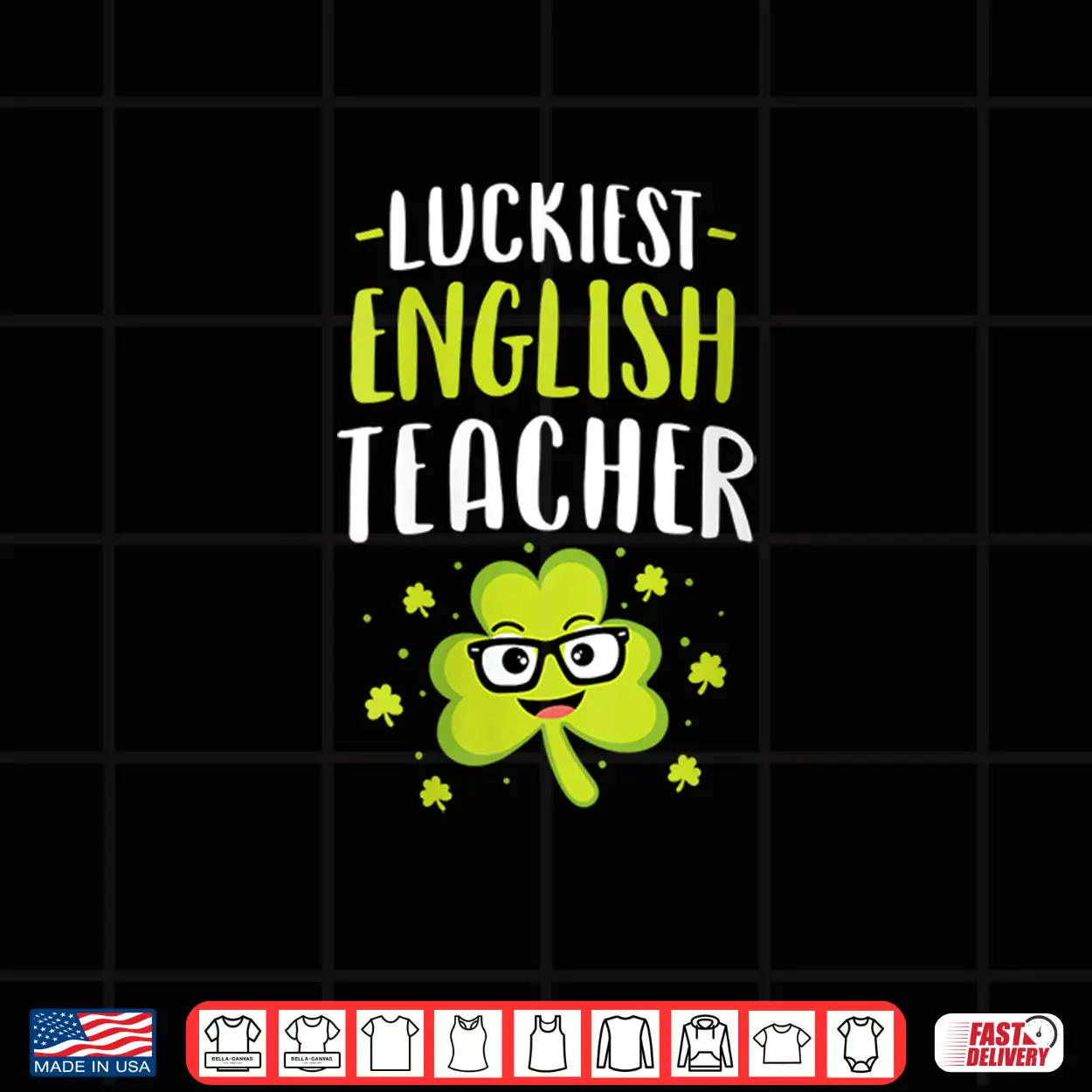 Womens Luckiest English Teacher Shirt St Patrick’S Day Teachers V Neck Shirt