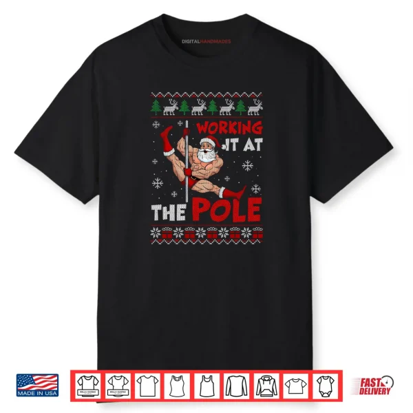 Working It At The Pole Funny Santa Dancing Ugly Christmas Shirt