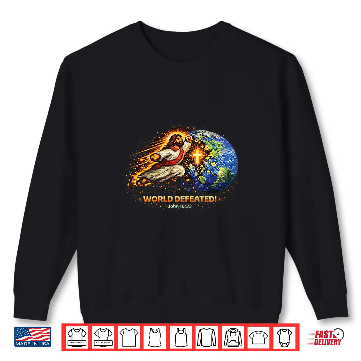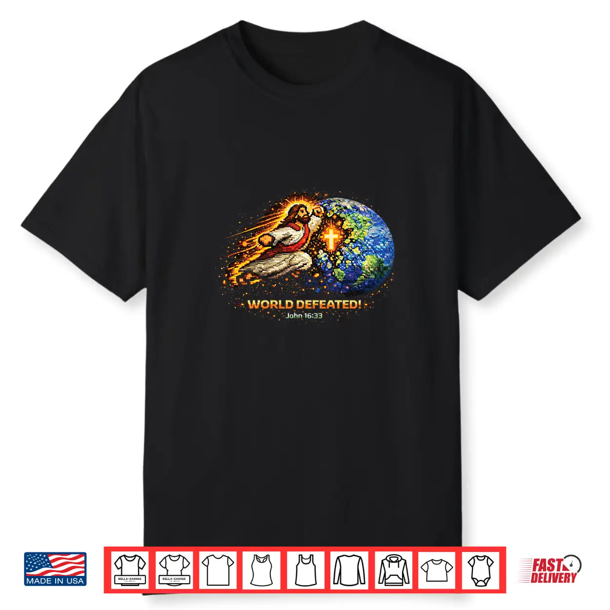 World Defeated John Sixteen Thirty Three Retro Gamer Christian Shirt