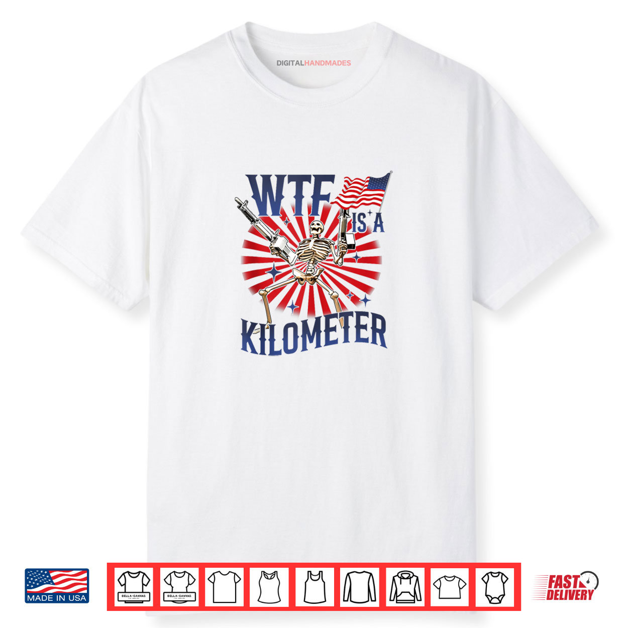WTF Is A Kilometer Skeleton Wear Firearms American Saying Shirt