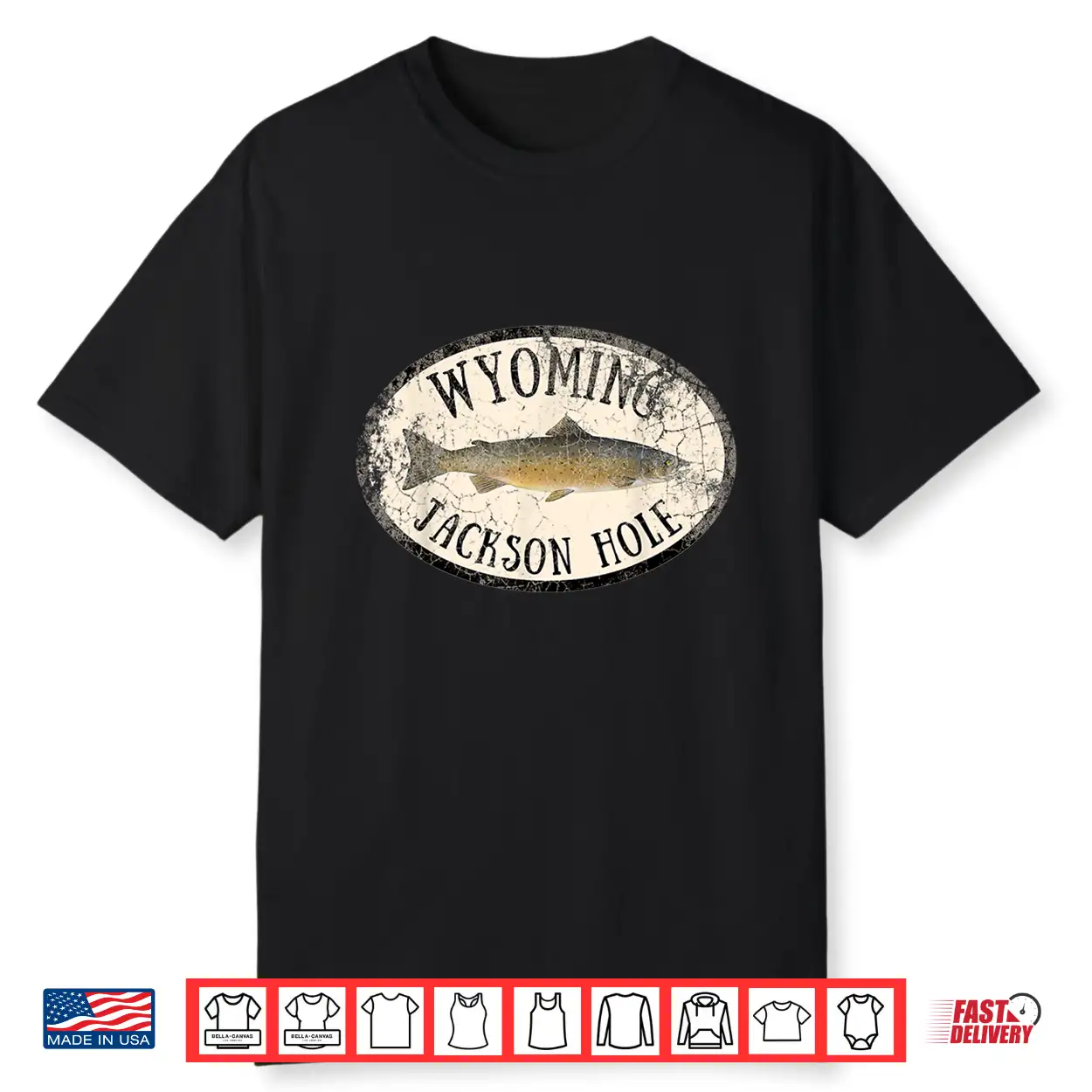 Wyoming Jackson Hole Trout Fish Fly Fishing Vintage Shirt