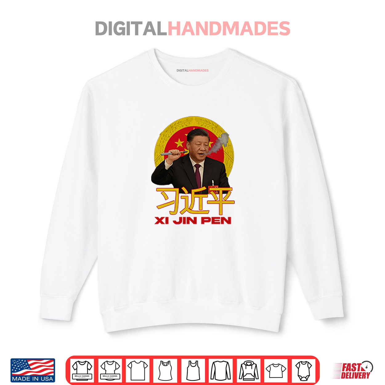 political parody, wordplay joke, protest design, global satire, edgy humor, freedom of speech, xi jinping meme, clever pun, bold message, current affairs