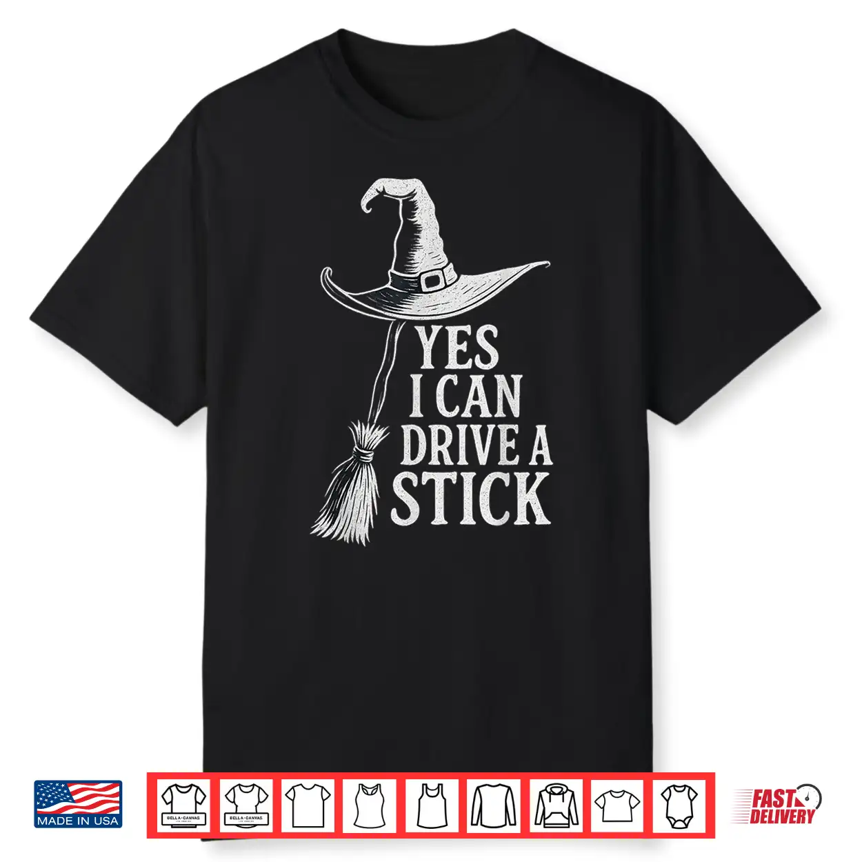 Yes I Can Drive A Stick Funny Witch Flying Broom Halloween Shirt