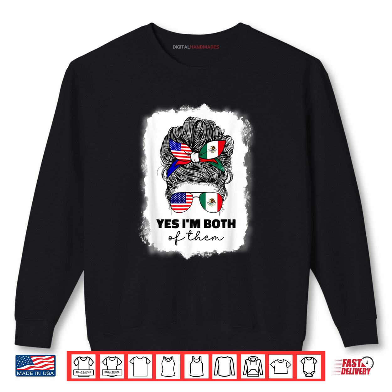 Yes I’m Both Of Them Proud American Mexican Flag Messy Bun Shirt