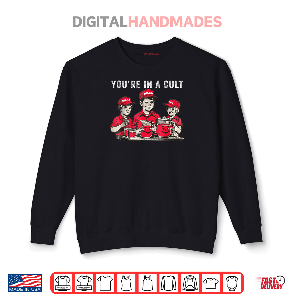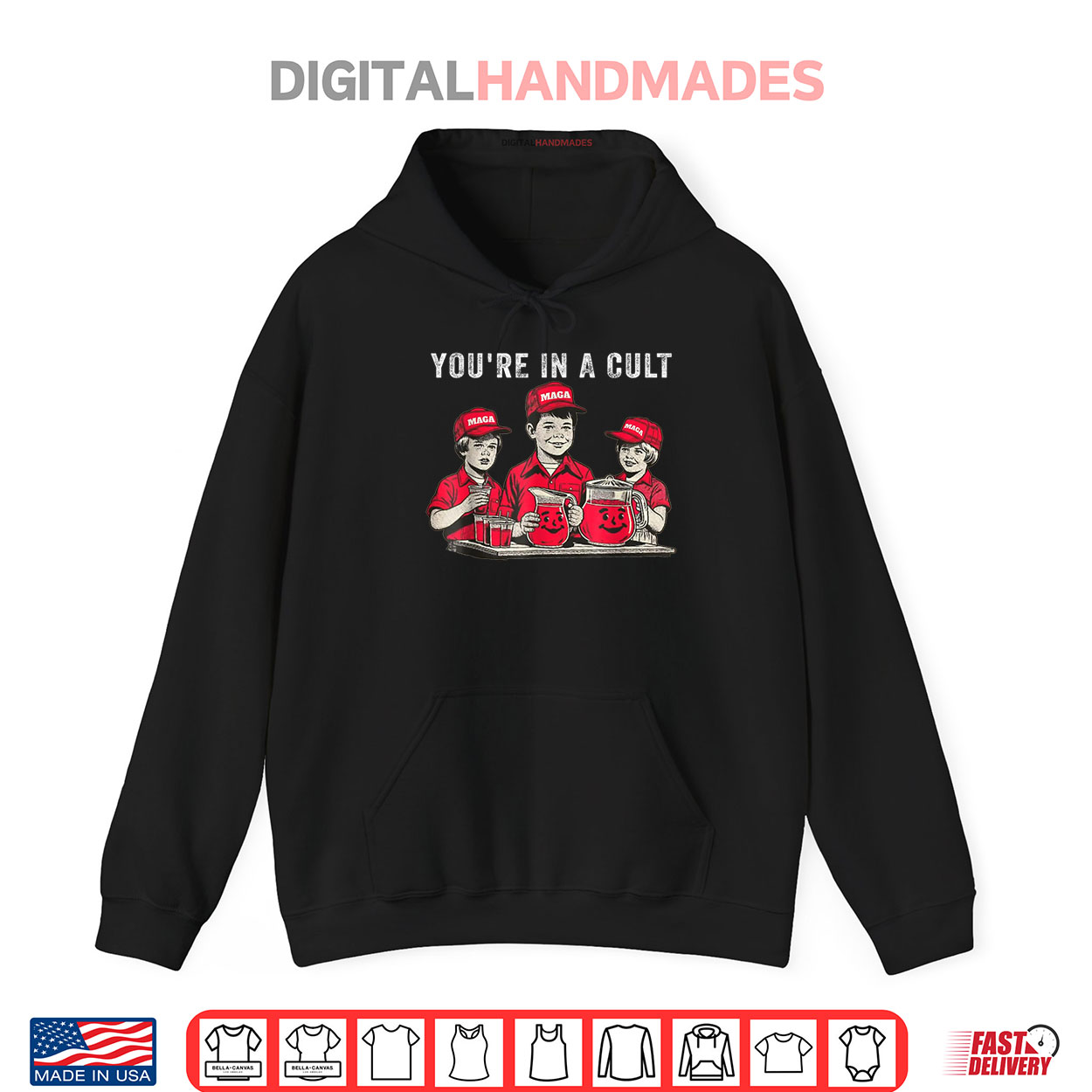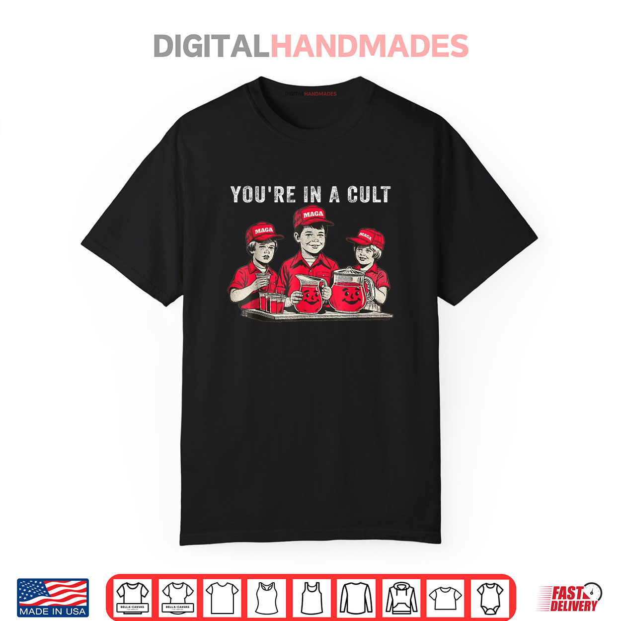 cult awareness funny shirt, you’re in a cult tee, sarcastic satire shirt, anti-cult statement apparel, edgy humor graphic, dark comedy quote shirt, cult meme fashion, social commentary tee, ironic bold design, red flag awareness shirt