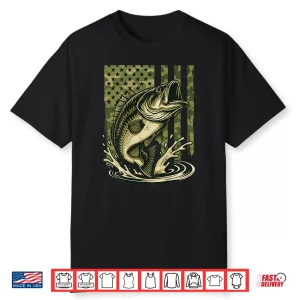 Youth Camo Bass Fish American Flag Freshwater North America Shirt