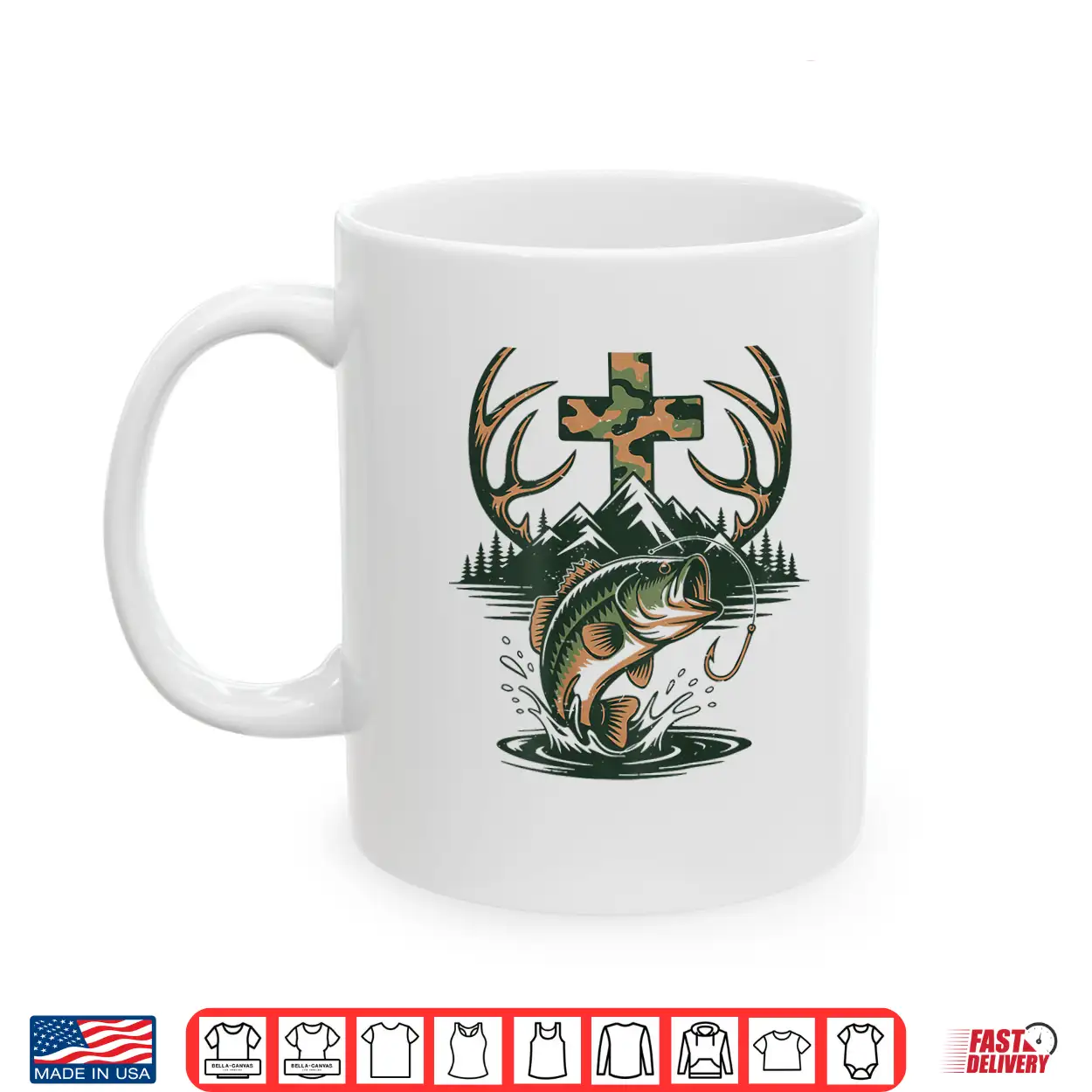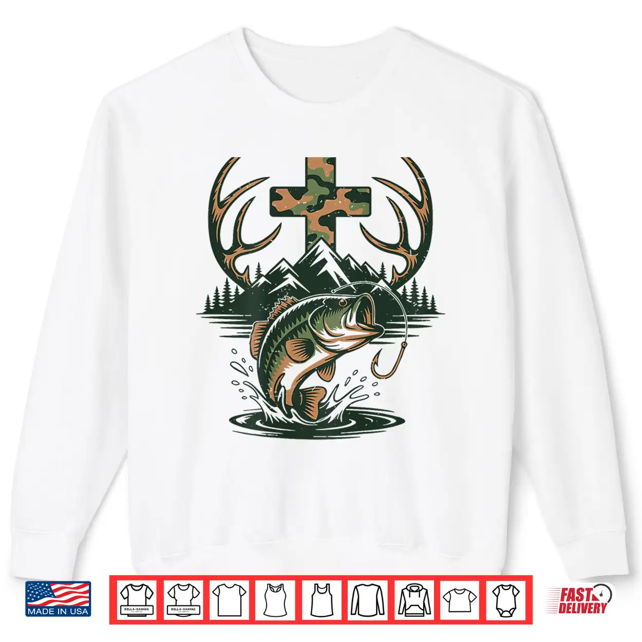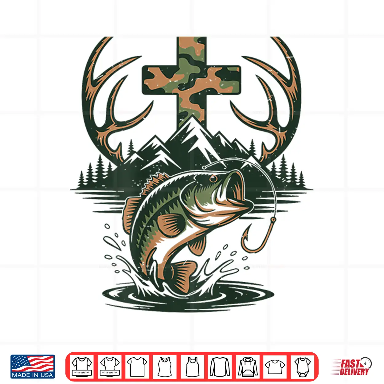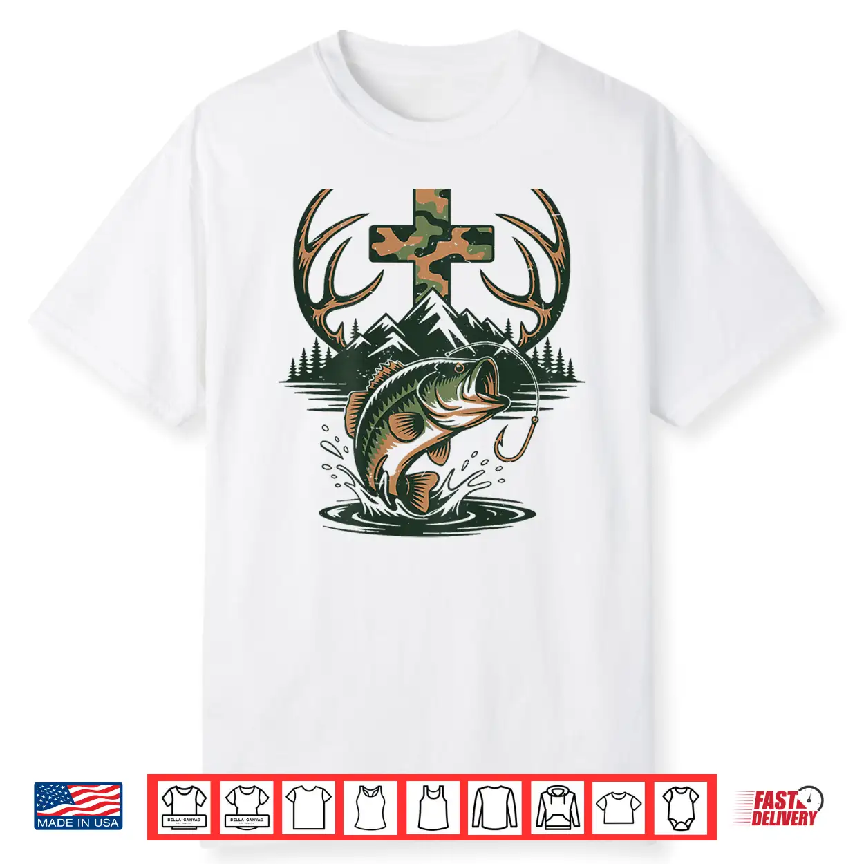 Youth Camo Faith Hunting Fishing Cross Fisherman Christian Shirt