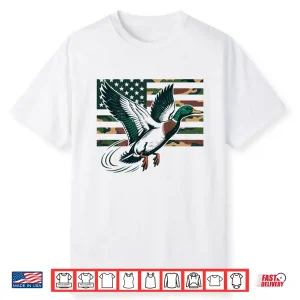 Youth Camo Mallard Duck Hunting Camouflage American Flag Shirt