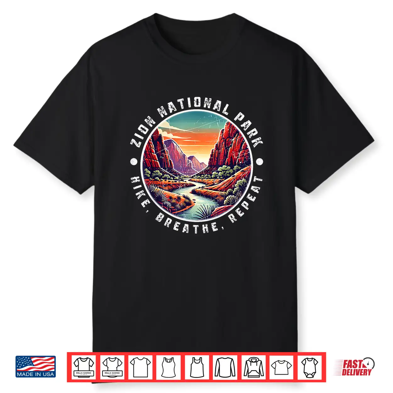 Zion National Park Hike Breathe Repeat Vintage Design Shirt
