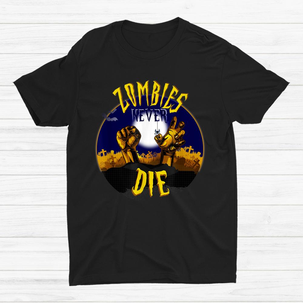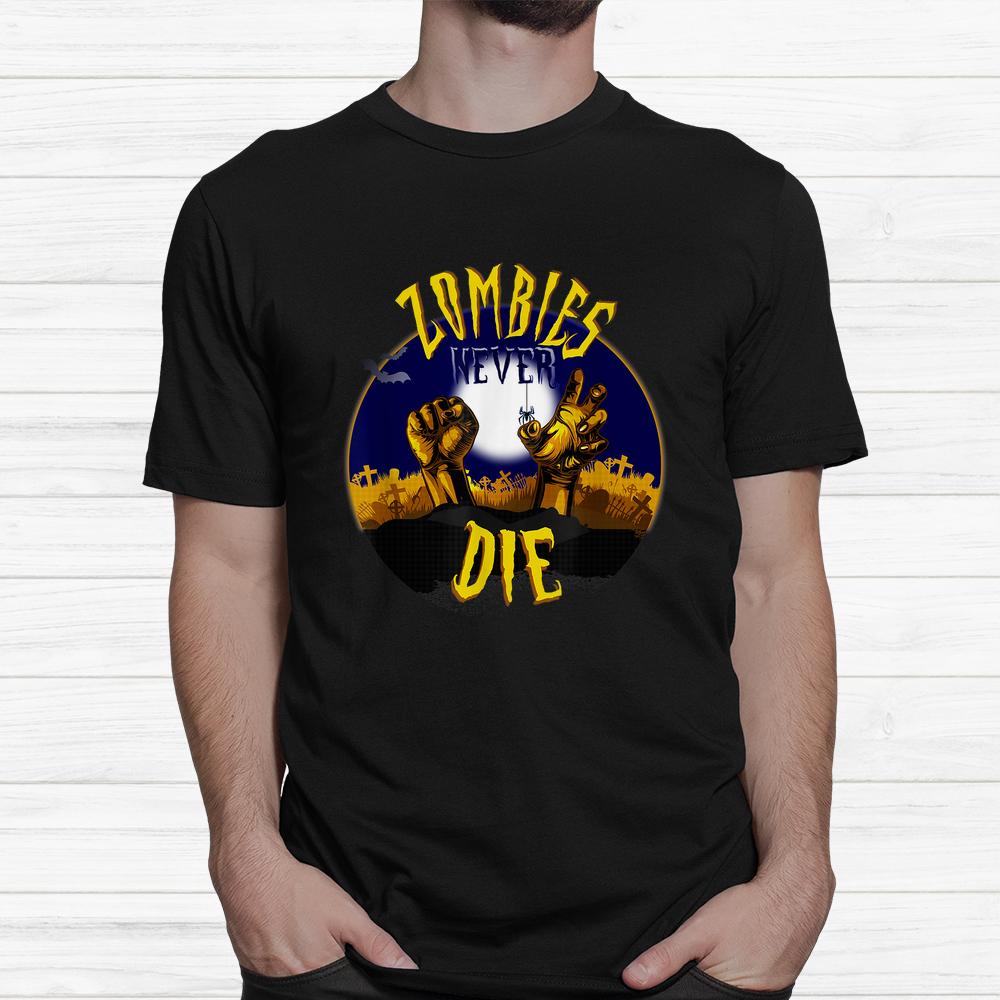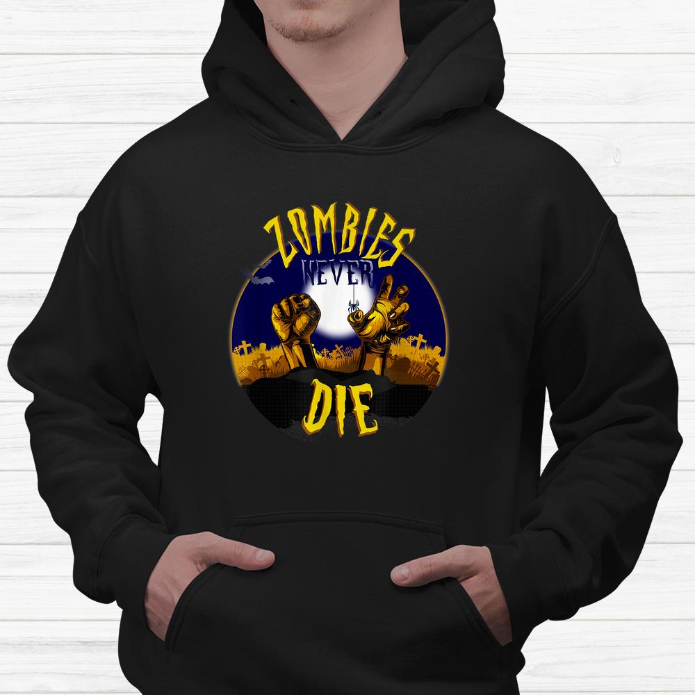 Zombies Never Die Graveyard Zombie Hands Halloween Shirt, hoodie, sweatshirt, long sleeve and ladies T-shirt